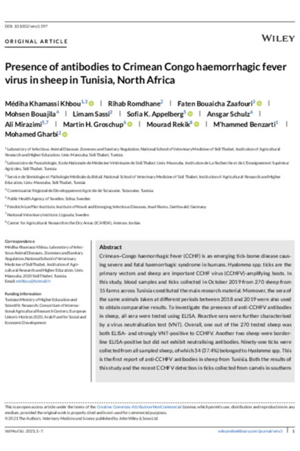 Presence of antibodies to Crimean Congo haemorrhagic fever virus in sheep in Tunisia, North Africa