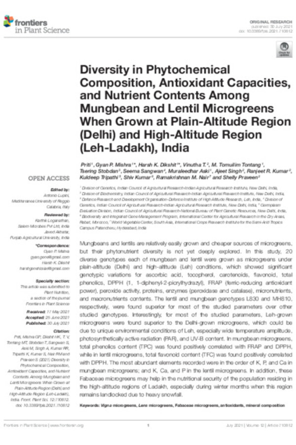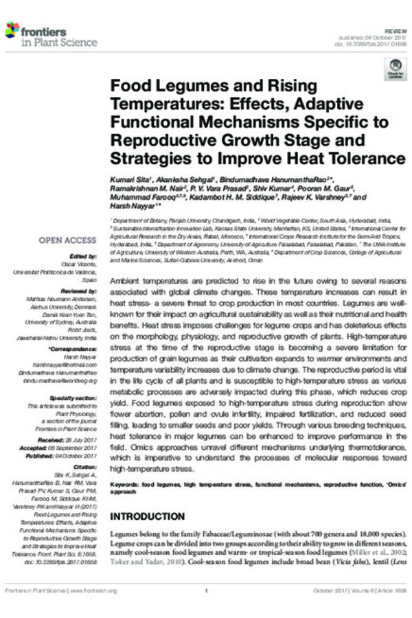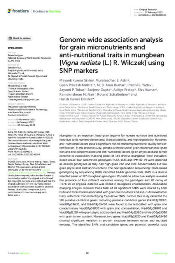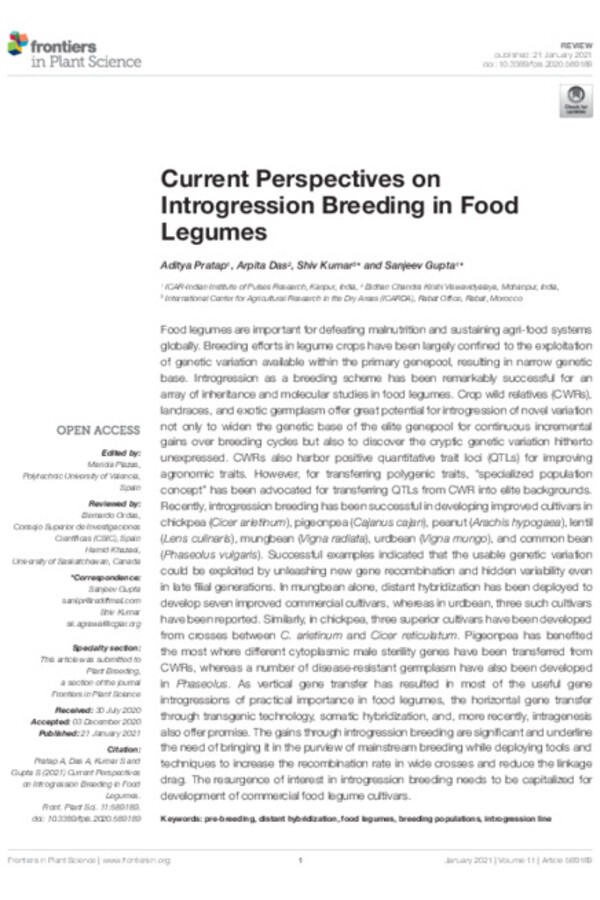 Genetic enhancement of food legumes for nutritional security and sustainable cereal-based cropping systems