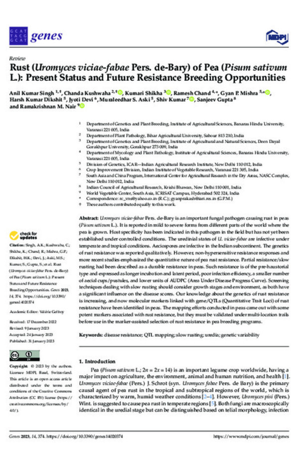 Rust (Uromyces viciae-fabae Pers. de-Bary) of Pea (Pisum sativum L.): Present Status and Future Resistance Breeding Opportunities