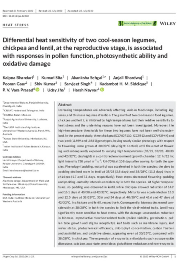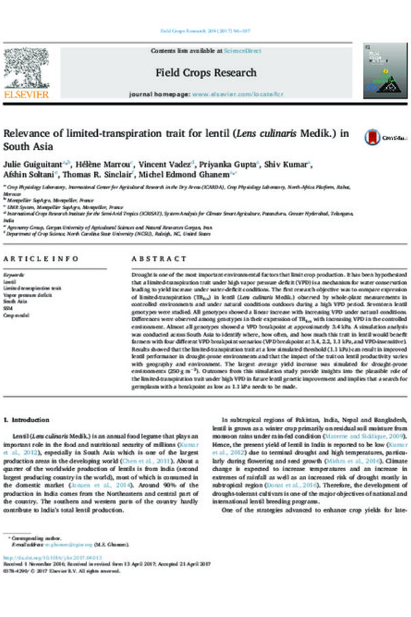 Relevance of limited-transpiration trait for lentil (Lens culinaris Medik.) in South Asia