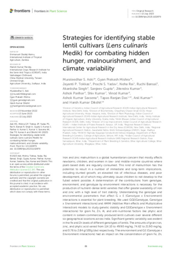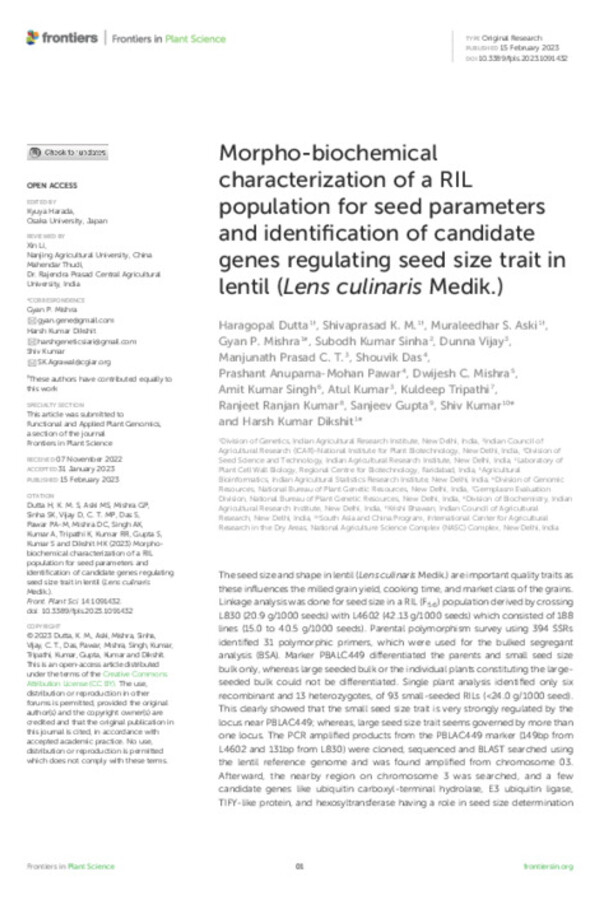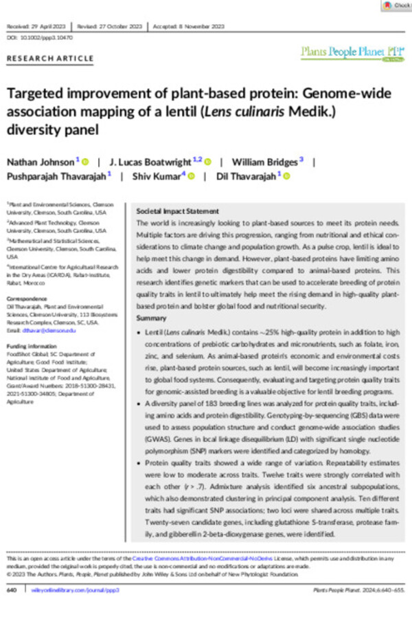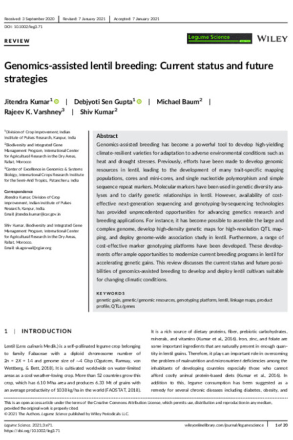 Genomics-assisted lentil breeding: Current status and futurestrategies