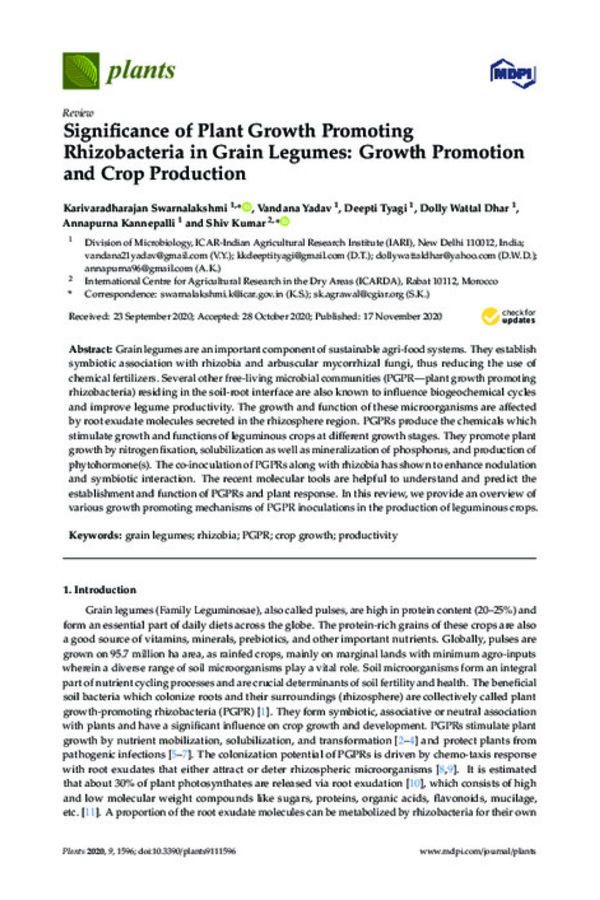 Significance of Plant Growth Promoting Rhizobacteria in Grain Legumes: Growth Promotion and Crop Production