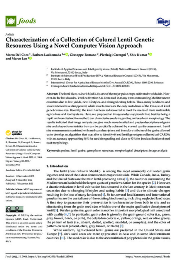 Characterization of a Collection of Colored Lentil Genetic Resources Using a Novel Computer Vision Approach