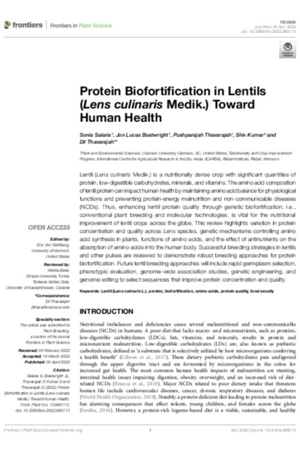 Protein Biofortification in Lentils (Lens culinaris Medik.) Toward Human Health
