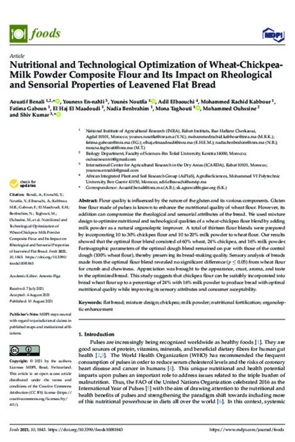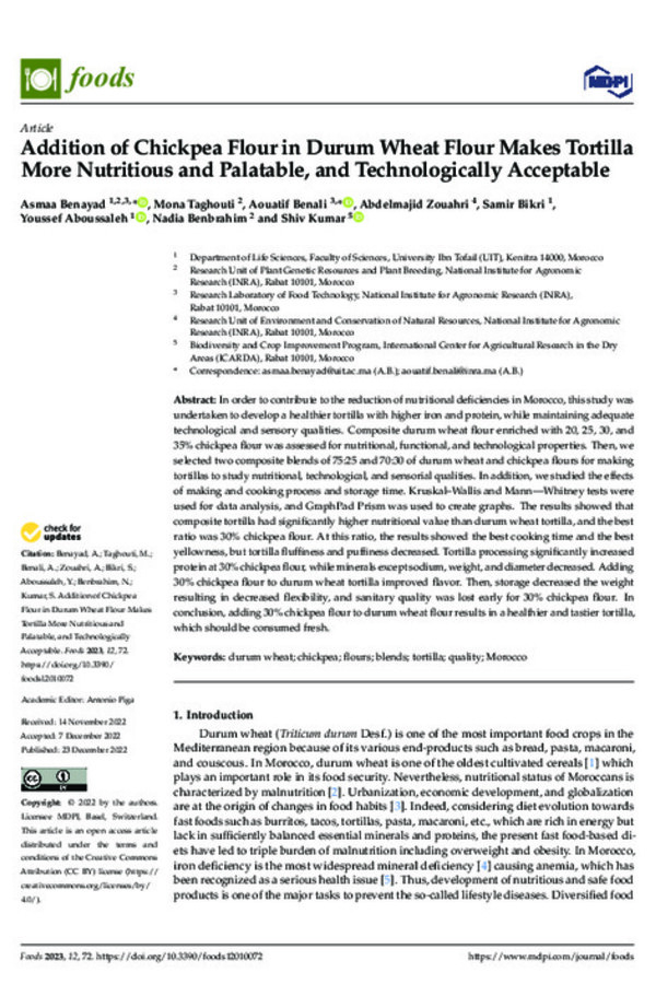 Addition of Chickpea Flour in Durum Wheat Flour Makes Tortilla More Nutritious and Palatable, and Technologically Acceptable