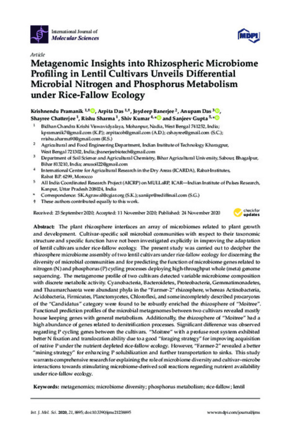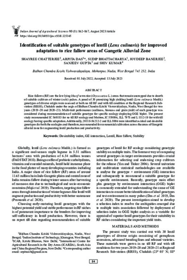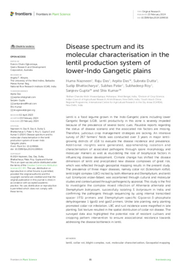 Disease spectrum and its molecular characterisation in the lentil production system of lower-Indo Gangetic plains