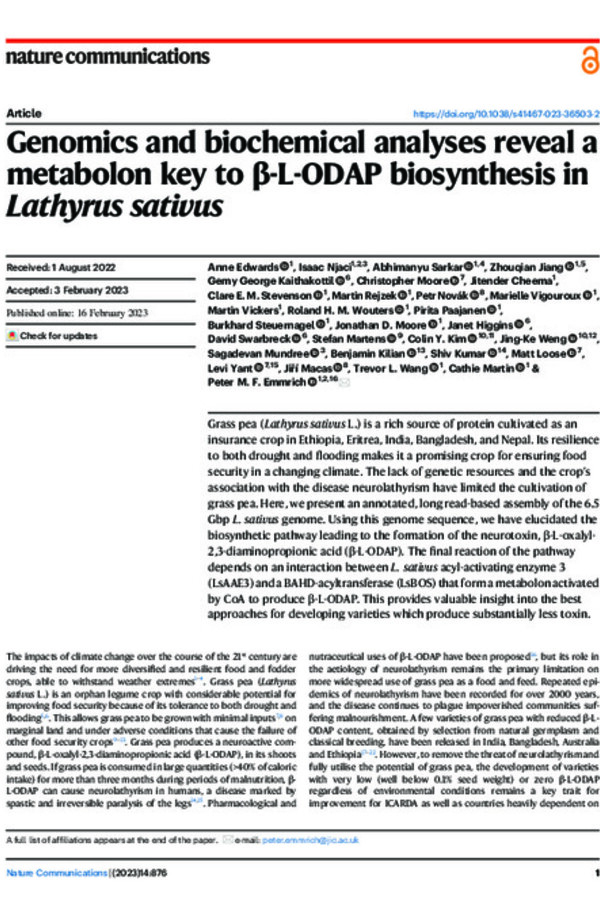 Genomics and biochemical analyses reveal a metabolon key to β-L-ODAP biosynthesis in Lathyrus sativus