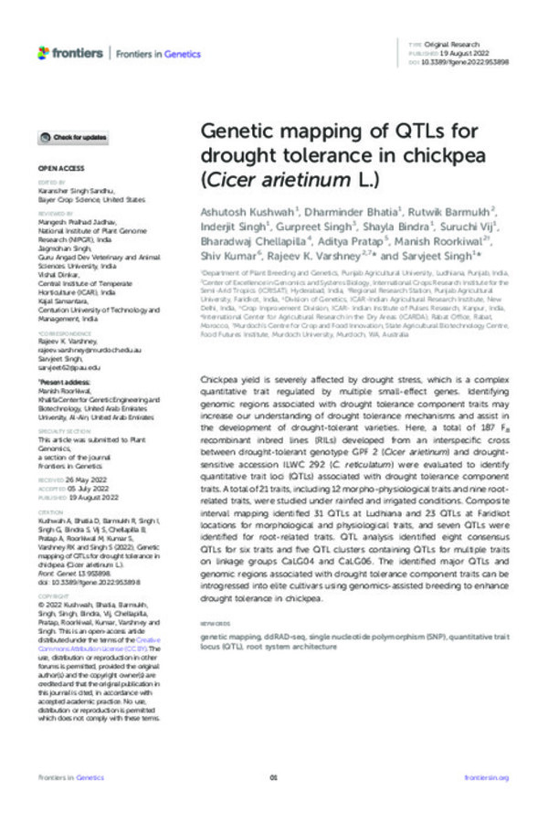 Genetic mapping of QTLs for drought tolerance in chickpea (Cicer arietinum L.)
