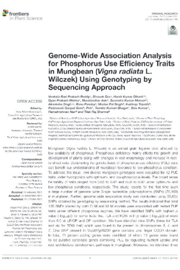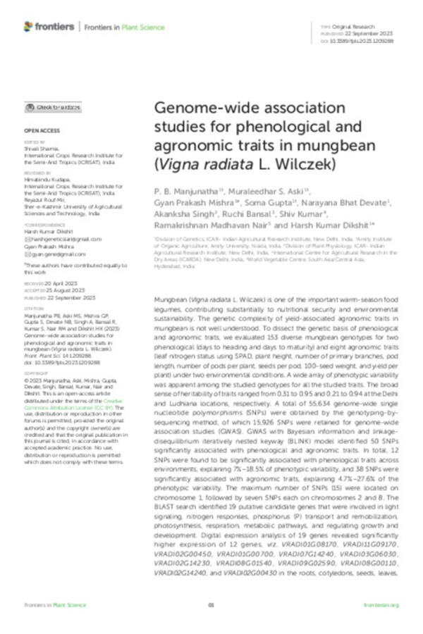 Genome-wide association studies for phenological and agronomic traits in mungbean (Vigna radiata L. Wilczek)