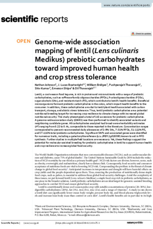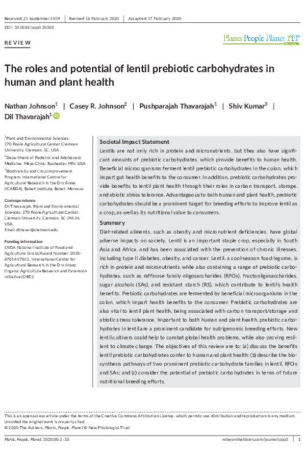The roles and potential of lentil prebiotic carbohydrates in human and plant health