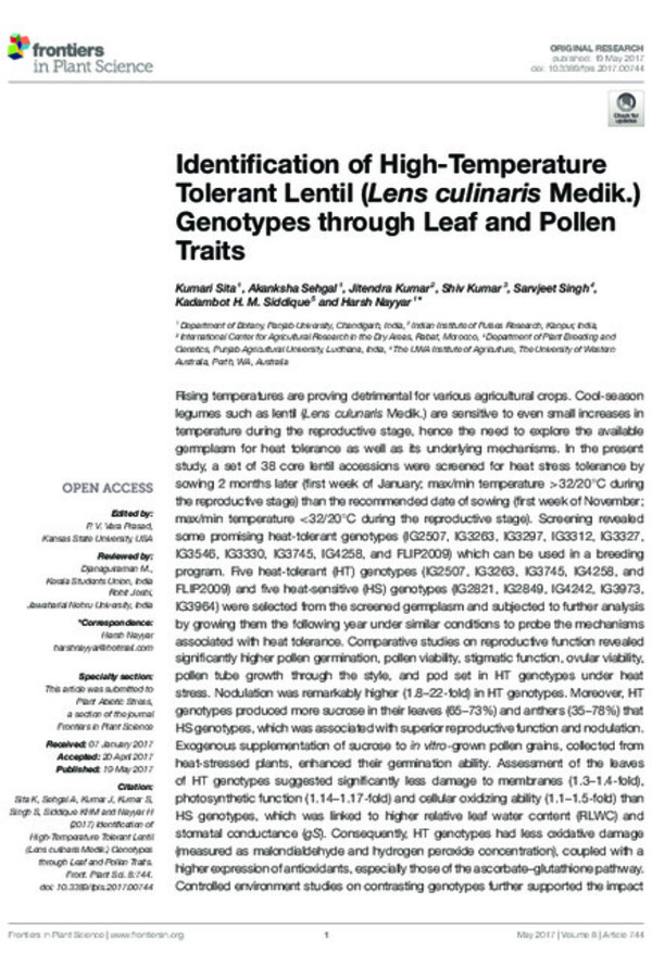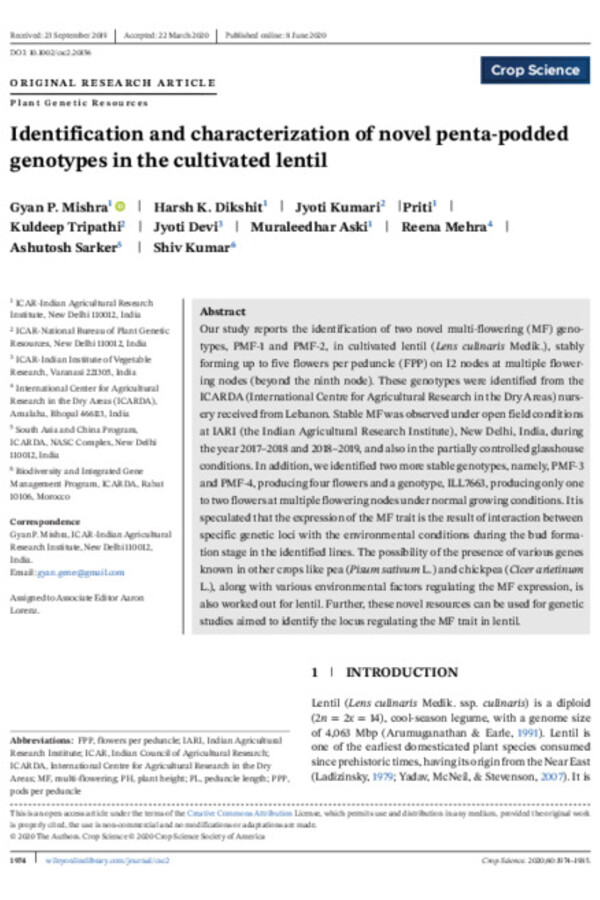 Identification and characterization of novel penta-podded genotypes in the cultivated lentil