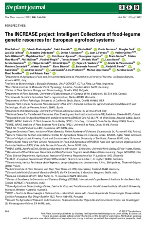 The INCREASE project: Intelligent Collections of food-legumegenetic resources for European agrofood systems