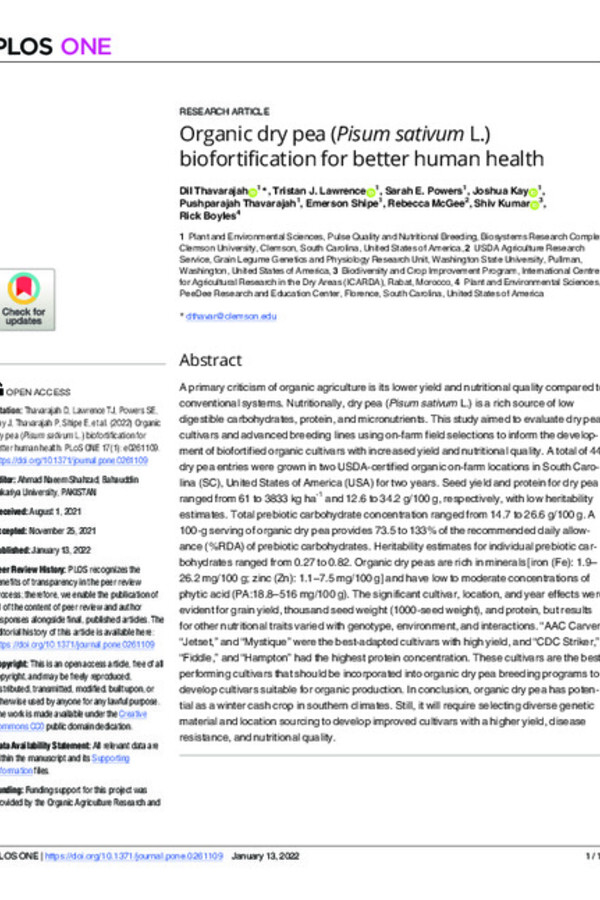 Organic dry pea (Pisum sativum L.) biofortification for better human health