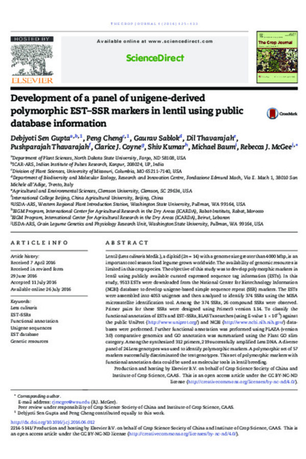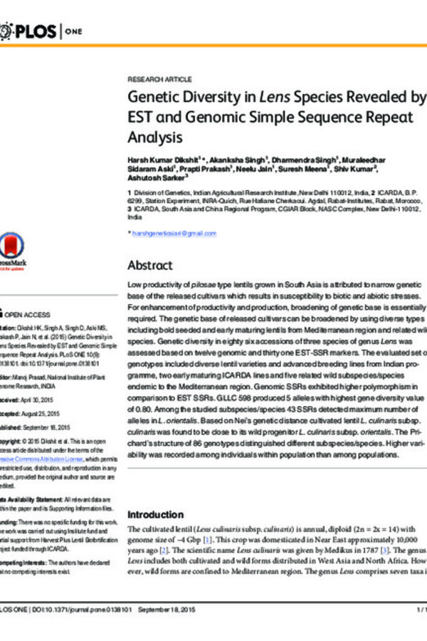 Genetic Diversity in Lens Species Revealed by EST and Genomic Simple Sequence Repeat Analysis