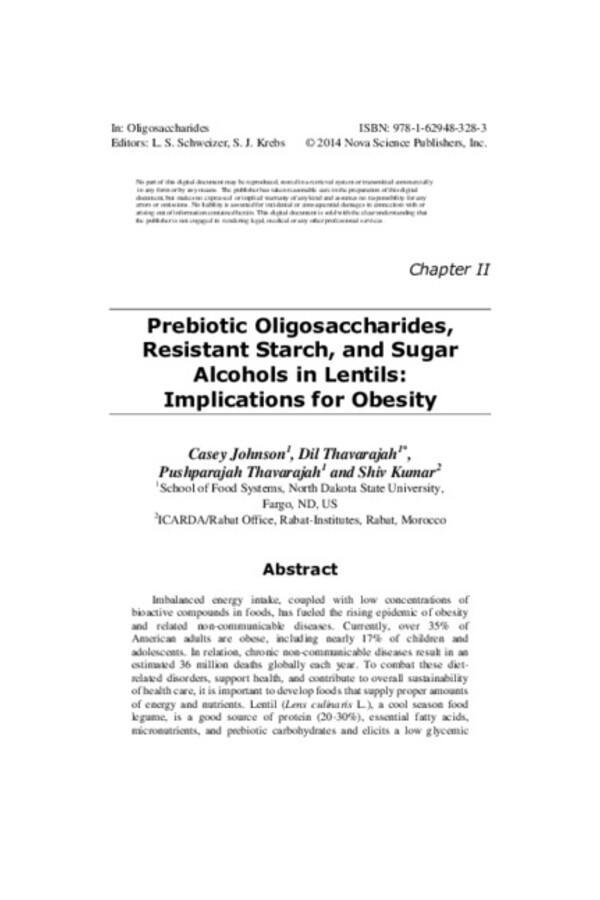 Prebiotic Oligosaccharides, Resistant Starch and Sugar Alcohols in Lentils: Implications for Obesity