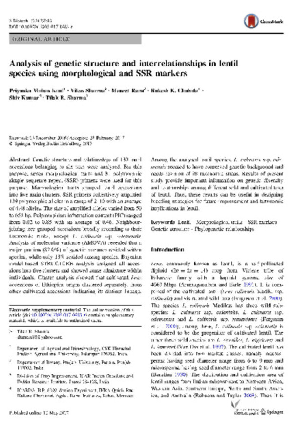 Analysis of genetic structure and interrelationships in lentil species using morphological and SSR markers