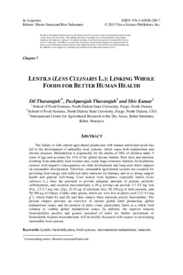 Lentils (Lens Culinaris L.): Linking whole foods for better human health