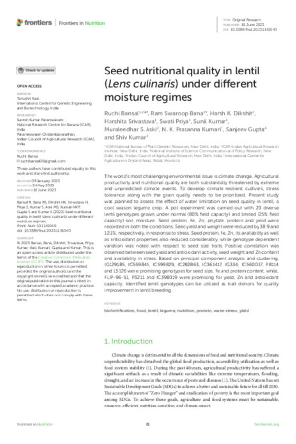 Seed nutritional quality in lentil (Lens culinaris) under different moisture regimes
