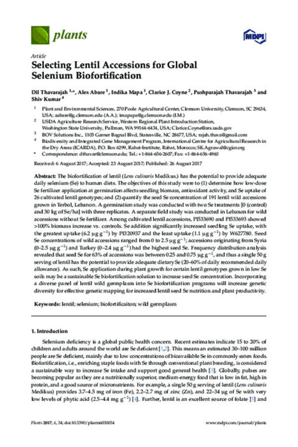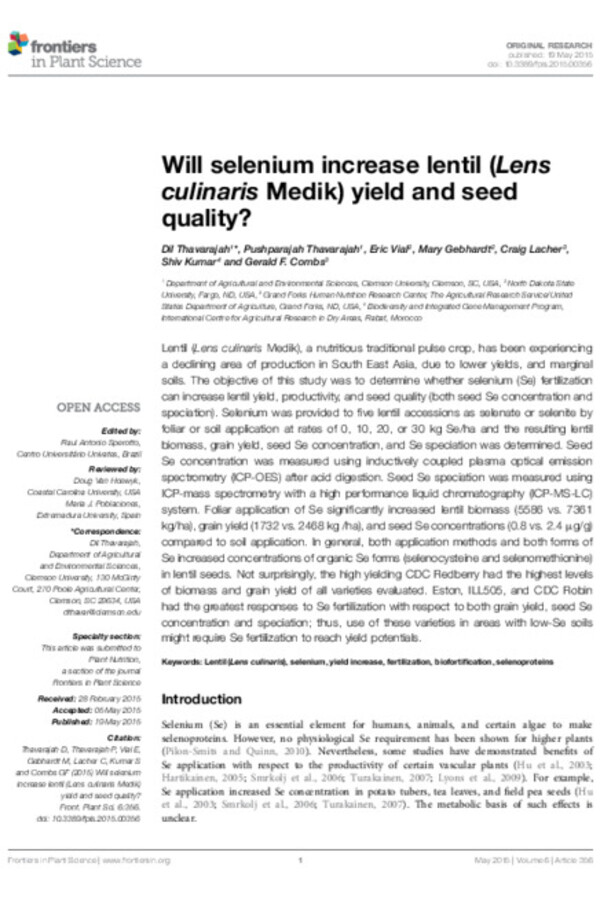 Will selenium increase lentil (Lens culinaris Medik) yield and seed quality?
