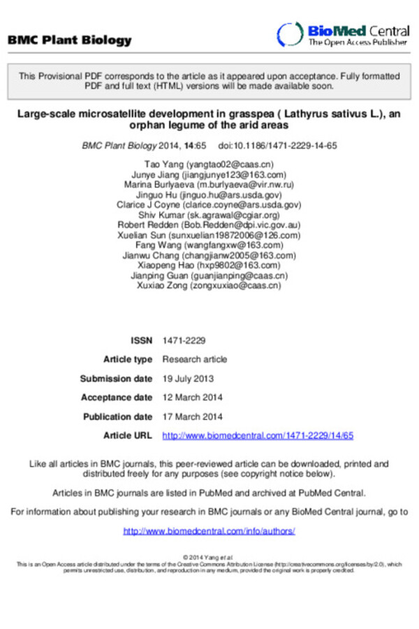 Large-scale microsatellite development in grasspea ( Lathyrus sativus L.), an orphan legume of the arid areas