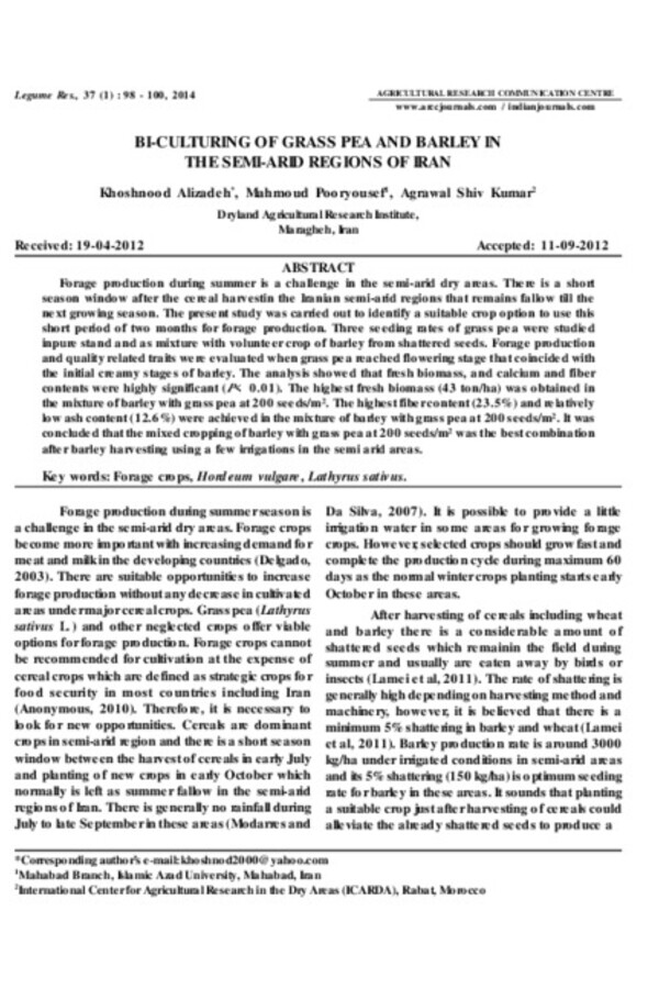 BI-CULTURING OF GRASS PEA AND BARLEY IN THE SEMI-ARID REGIONS OF IRAN