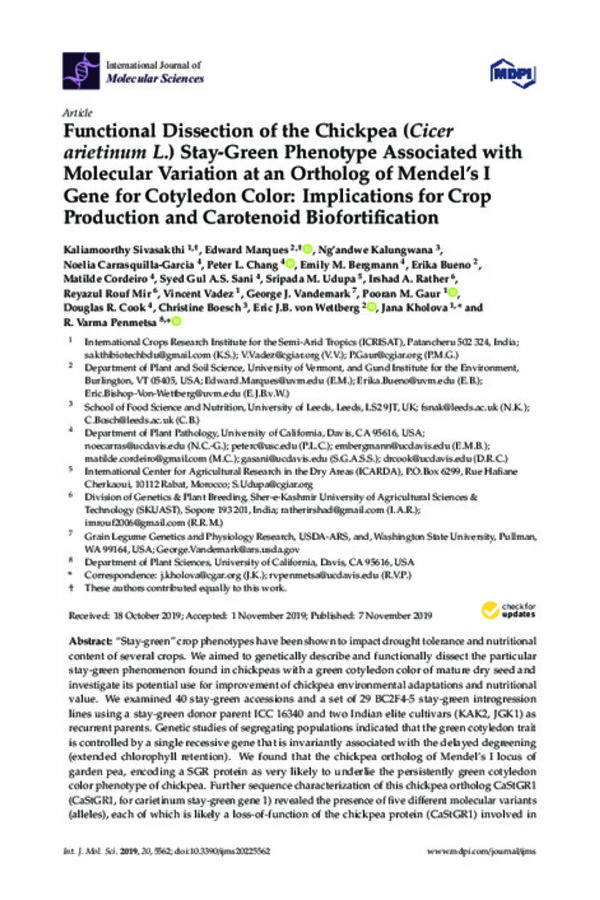 Novel Genomic Regions Linked to Ascochyta Blight Resistance in Two Differentially Resistant Cultivars of Chickpea