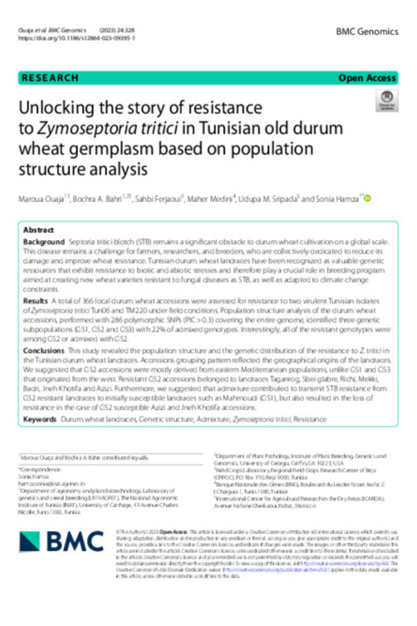 Genome-wide association study reveals major loci for resistance to septoria tritici blotch in a Tunisian durum wheat collection
