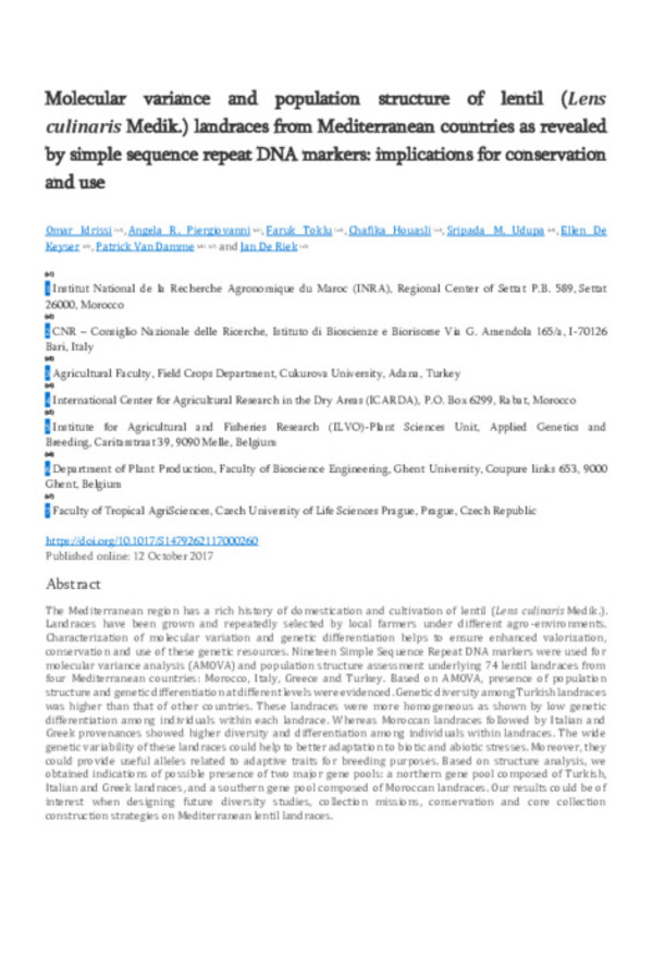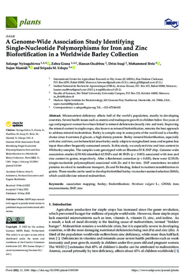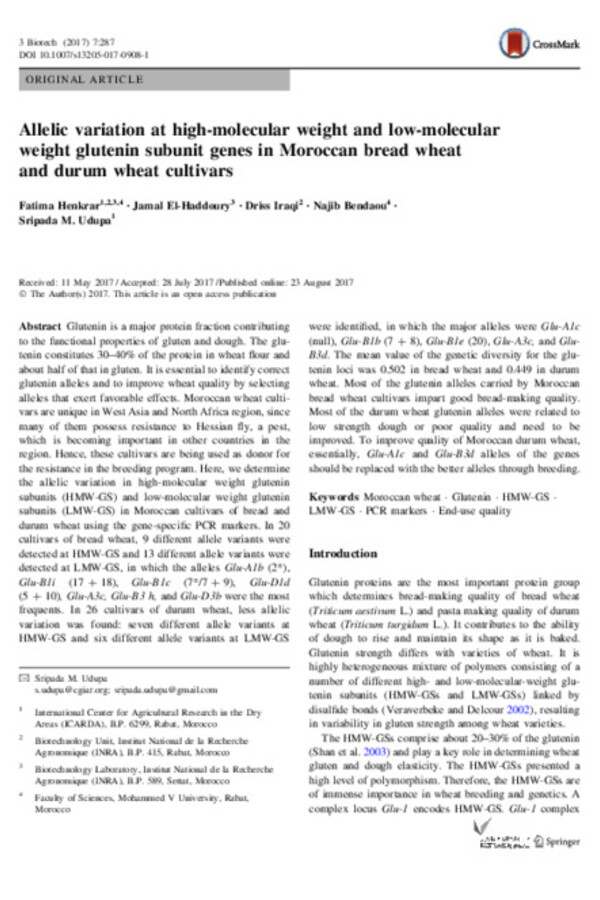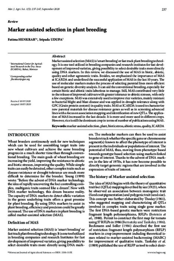 Sripada Udupa is a senior scientist (biotechnology) with over 25 years of experience using genomics and biotechnology tools for crop improvement. He helped to establish ICARDA’s biotechnology research and laboratory, and has been working with ICARDA in Morocco since 2006. He has authored more than 100 publications, including peer-reviewed journals, proceedings, and book chapters.