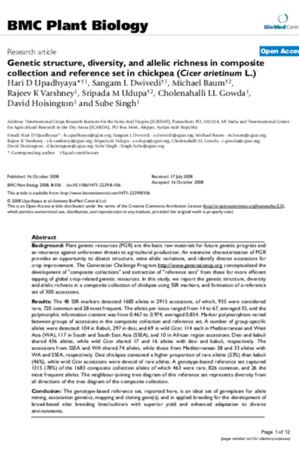 Genetic structure, diversity, and allelic richness in composite collection and reference set in chickpea (Cicer arietinum L.)