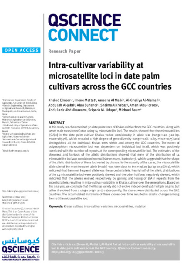 Intra-cultivar variability at microsatellite loci in date palm cultivars across the GCC countries