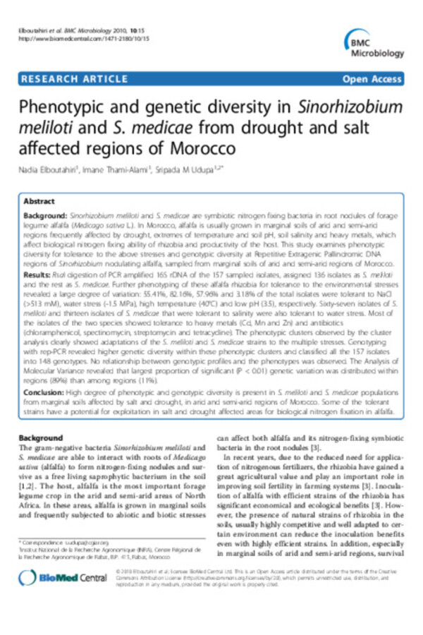 Phenotypic and genetic diversity in Sinorhizobium meliloti and S. medicae from drought and salt affected regions of Morocco