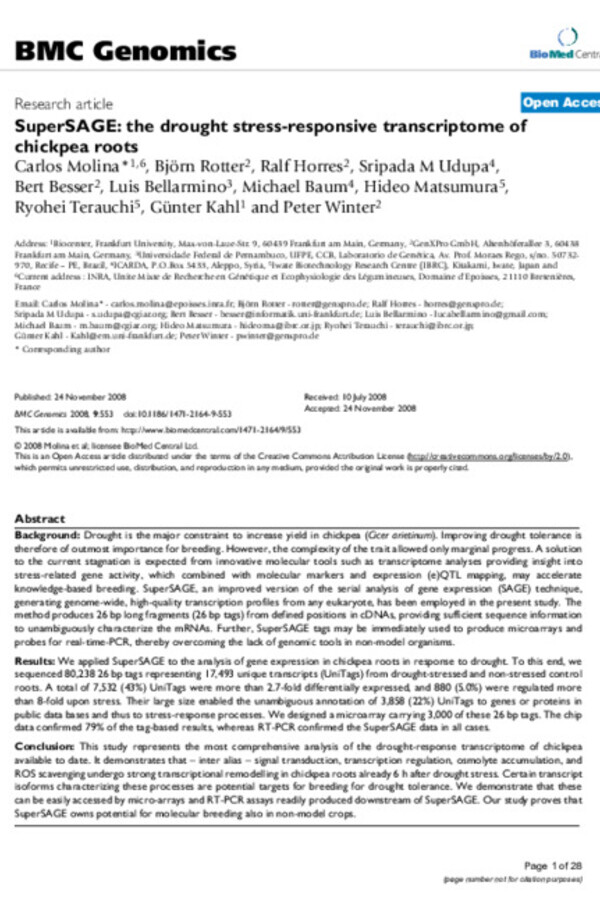 SuperSAGE: the drought stress-responsive transcriptome of chickpea roots