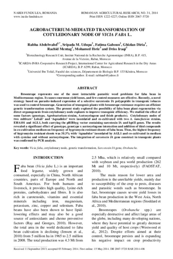 Agrobacterium-mediated transformation of cotyledonary node of Vicia faba L.
