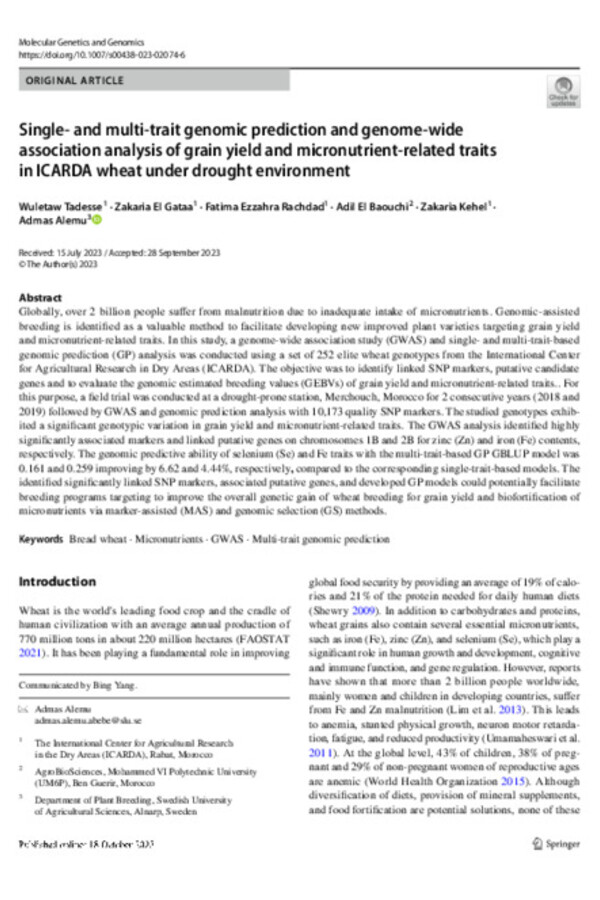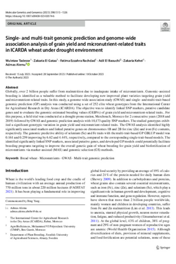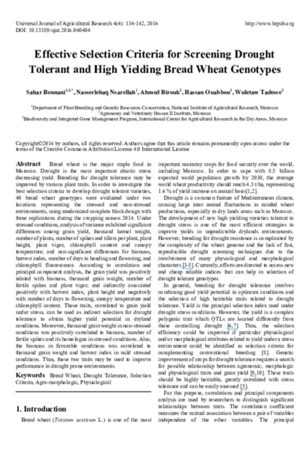 Accelerated Wheat Breeding and Production in the Face of Climate Change: The Case of Morocco