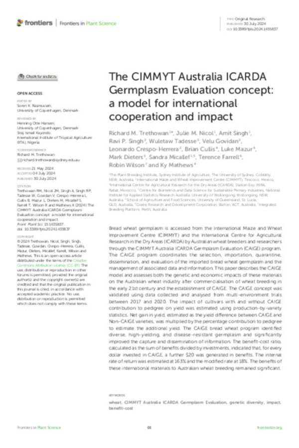 The CIMMYT Australia ICARDA Germplasm Evaluation concept: a model for international cooperation and impact