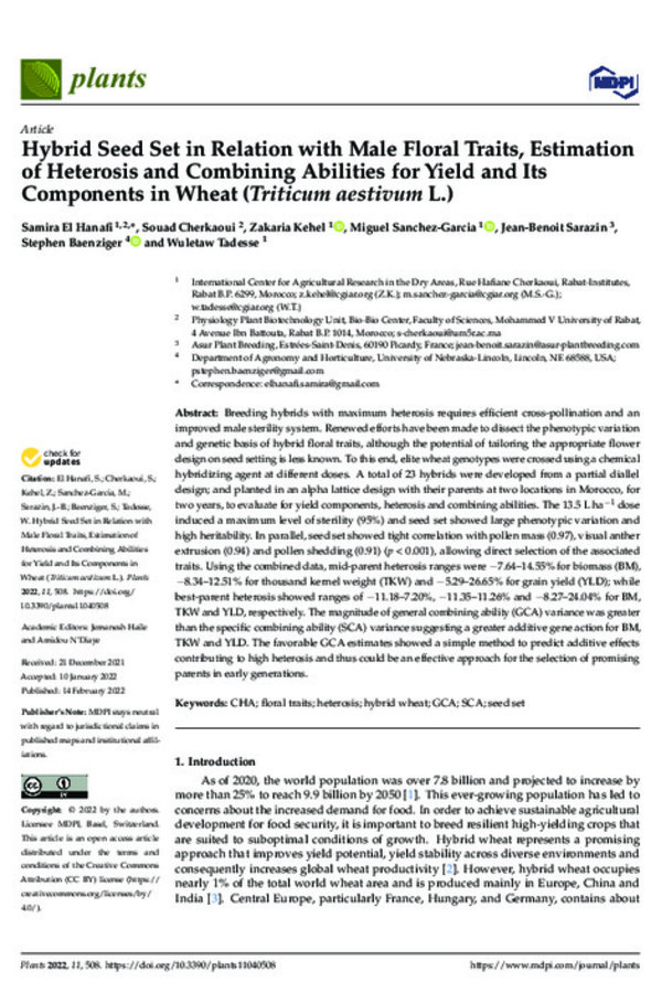 Phenotypic evaluation of elite spring bread wheat genotypes for hybrid potential traits