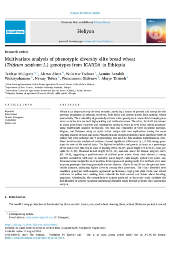 Multivariate analysis of phenotypic diversity elite bread wheat (Triticum aestivum L.) genotypes from ICARDA in Ethiopia
