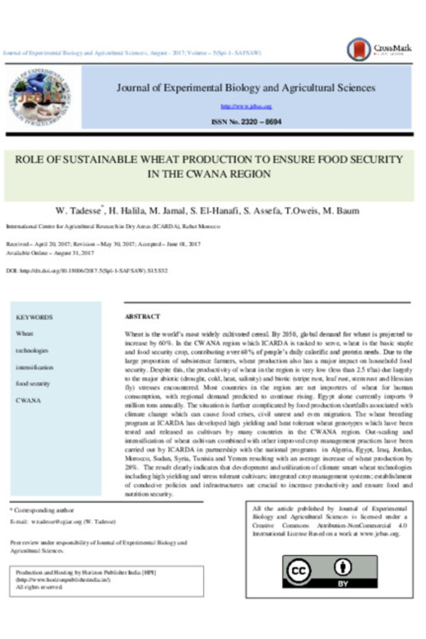 Role of Sustainable Wheat Production to Ensure Food Security in the CWANA region
