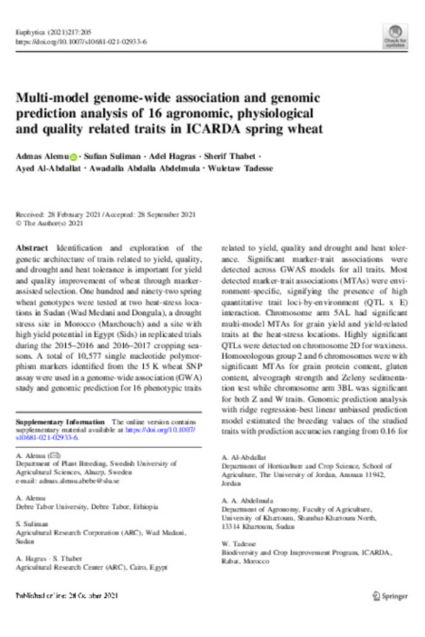 Dr. Wuletaw Tadesse Degu leads the spring bread wheat breeding program at ICARDA. Before joining the Center in 2010 he worked at CIMMYT as a postdoctoral wheat breeder and in the Ethiopian Agricultural Research Institute as a crop breeder.