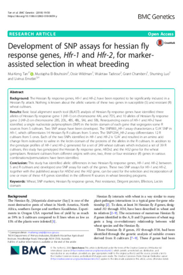 Genome-wide association study and genomic prediction for hessian fly resistance in ICARDA’s elite bread wheat genotypes