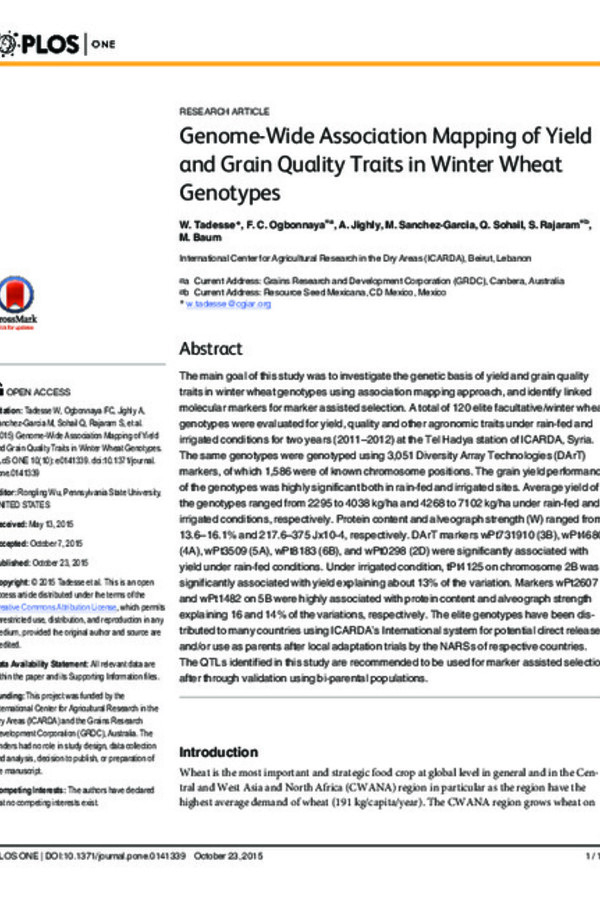 Dr. Tadesse’s research focuses on the development of widely adapted and high yielding wheat genotypes with resistance to major biotic (diseases and insects) and abiotic (drought and heat) stresses in sub-Saharan Africa and the Central and West Asia and North Africa (CWANA) region. His program distributes more than 300 elite spring bread wheat genotypes on an annual basis through international nurseries to national agricultural research programs. In the past five years alone, more than 60 ICARDA wheat varieties have been released by national programs in sub-Saharan Africa and CWANA.
