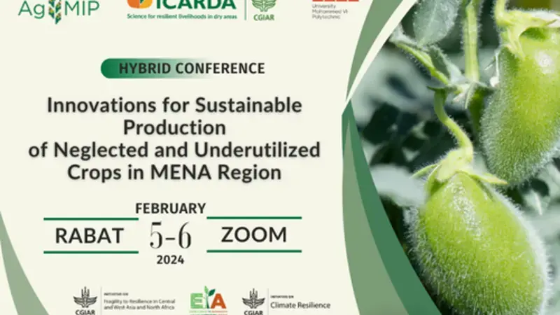 The MENA Regional Conference on Neglected and Underutilized Crop Species (NUS) is scheduled for February 5-6, 2024, in Rabat, Morocco, with a virtual component. Recognizing the potential of NUS in addressing malnutrition, hunger, and climate change impacts, the conference, organized by ICARDA, UM6P, and AgMIP-MENA, aims to overcome challenges like limited awareness and market access. The initiative aligns with global programs such as VACS (Vision for Adapted Crops and Soils) and AIM4C (Agriculture Innovation Mission for Climate) and CGIAR initiatives such as Fragility to Resilience – CWANA Regional Integrated Initiative (F2R-CWANA), the Excellence in Agronomy Initiative, and the Climate Resilience Initiative, promoting climate-smart agriculture and sustainable food systems.