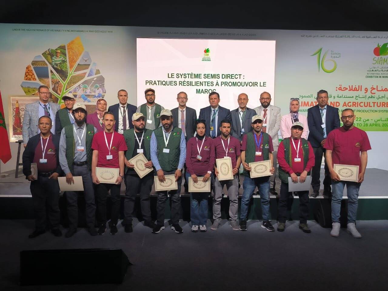 The event "Reaching 1 million Hectares of Conservation Agriculture Together," organized by the Ministry of Agriculture, INRA, ONCA (Office National du Conseil Agricole), ICARDA, and the World Bank, with the involvement of universities, private partners, NGOs, farmers, and extension agents, showcased a pioneering conservation agriculture digital tool. Additionally, ONCA technicians specializing in direct seeding were awarded certificates for participating in training programs under CGIAR’s Excellence in Agronomy and ClimBER initiatives.