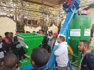 Following this positive evaluation, in 2023, ICARDA distributed three locally manufactured feed processing machines, which included a grinder, conveyor, and feed mixer, to sheep-fattening youth groups in Bassona Werena (North Shewa), Boka-shut (Bonga), and Serara (Doyogena) in Ethiopia. The machines meant these groups could now produce and sell compound feed concentrates to their members and neighbouring farmers.