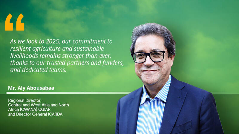 As the year closes, I would once again like to sincerely thank ICARDA staff, partners, and our funders for enabling our work, as well as their unwavering dedication to keeping the organization at the forefront of global dryland agri-research and bringing the best of science and innovation to the farming communities in our region. Together, let's continue to drive cooperation, foster positive changes in agri-food systems, and build a brighter future for the millions of people who call Central and West Asia, North Africa, and the Middle East home.