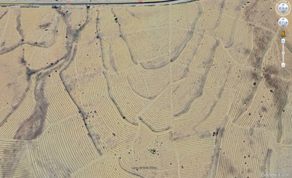 A recent image illustrating large scale plantation of the exotic species Acacia saligna (syn. cyanophylla) in central Tunisia - Photo Credit: Google Earth