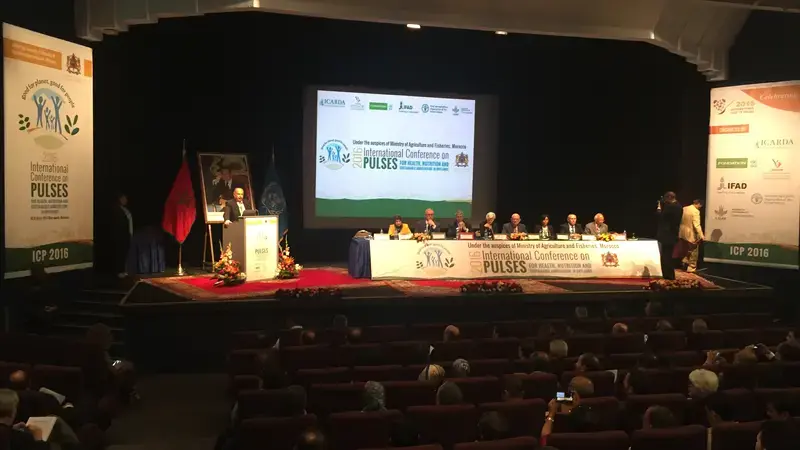 18 نيسان / أبريل 2016، الرباط، المغرب - تم اليوم افتتاح المؤتمر الدولي حول البقول للصحة والتغذية والزراعة المستدامة في المناطق الجافة لعام 2016 في مراكش في المغرب. وشارك في المؤتمر 350 شخصًا من 35 دولة، بالإضافة إلى المسؤولين عن صوغ السياسات ومنظمات البحوث الزراعية والعلماء والمزارعين والقطاع الخاص والجهات المانحة. إن البقول هي من البقوليات الغذائية ذات القيمة الغذائية العالية والهدف من هذا المؤتمر هو تحسين الوضع الغذائي لما يقرب المليار شخص من البيئات المستدامة في جميع أنحاء العالم، وخاصة في البلدان النامية إذ أن 800 ألف شخصًا لا يحصلون على الغذاء الكافي لتلبية احتياجاتهم الغذائية الأساسية. وقد تصبح هذه الفئة من السكان أشد تأثرًا بتغير المناخ والجفاف وارتفاع درجات الحرارة، خصوصًا في المناطق الجافة.