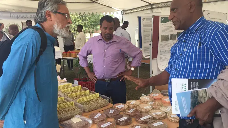 A Knowledge Share Fair was organized on April 12, 2016 at the International Livestock Research Institute (ILRI), Addis campus. CGIAR centers and the Ethiopian Institutes of Agriculture (EIAR) showcased different technologies, publications, seed, sheep, chicken, fish etc. Participants showed keen interest in the improved varieties of lentil, chickpea, malt barley and faba bean that were released through the joint activities of ICARDA and partners from the National Research System. ICARDA also presented its initiative of including feed traits of the crop residues into national grain legumes breeding programs in Ethiopia which would greatly benefit livestock producers.