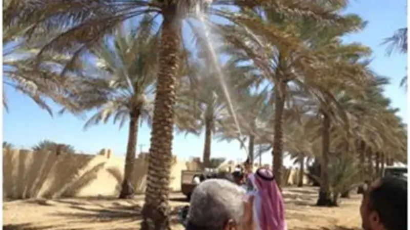 The project’s most important achievement in 2016 was the dissemination of “liquid pollination” to farmers in the region. Liquid pollination increases productivity and profits for date palm growers. In the date palm, only female trees bear fruit – and must first be pollinated by male trees. Traditional pollination methods are slow, costly, and require trained labor. Liquid pollination – where female trees are sprayed with pollen solution, using a hosepipe – is much quicker, cheaper, and equally effective.