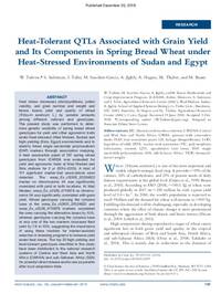 yield variation (p < 0.001) was detected among genotypes with nearly two- to four-fold variation among estimated means at the Sids and Wad Medani stations, respectively. A total of 111 significant marker-trait associations (MTA) were detected. The wsnp_Ex_c12812_20324622 marker on chromosome 4A was significantly correlated with yield at both locations. At Wad Medani, wsnp_Ex_c2526_4715978 on chromosome 5A was significantly correlated with grain yield. Wheat genotypes carrying the cytosine base at the wsnp_Ex_c12812_20324622 and wsnp_Ex_c2526_4715978 markers out-yielded the ones carrying the alternative bases by 15% while genotypes carrying the cytosine base at only one of the two markers increased their yield by 7.9-10%, suggesting the importance of using these markers for MAS in breeding programs to increase yield under heat stress. The top 20 high yielding and heat tolerant genotypes identified in this study have been distributed to the national research systems in the CWANA (Central and West Asia and North Africa) and SSA(Sub Sahara Africa) regions through our international nursery system for potential direct release and/or use as parents after local adaptation trials.